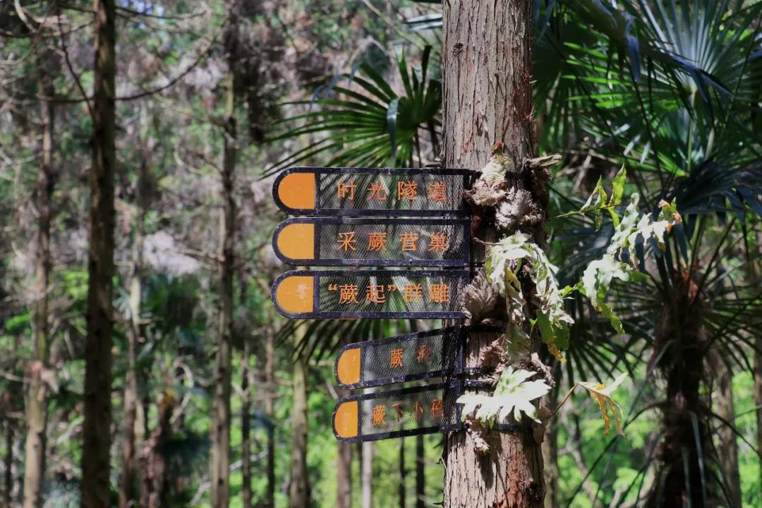 整个蕨类园引用“时光隧道”的概念,使用柳杉树、裸子植物、古蕨类、化石、恐龙模型等,将游客置身于植物进化的时空长河中,展现蕨类植物的妙趣横生。